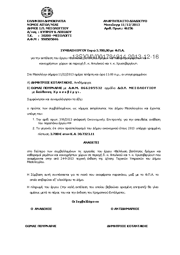 Αναζήτηση σε προκηρύξεις και συμβάσεις για: