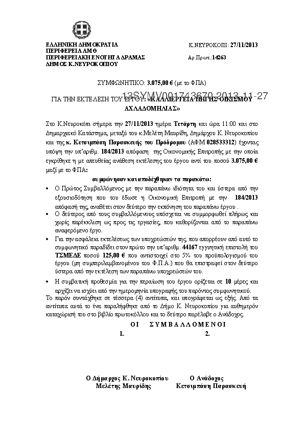 1. Προμήθεια ελαστικών για τα ΚΗΥ 9436, ΚΥ1437 & ΚΥ 8690 οχήματα του Δήμου Κ.Νευροκοπίου
