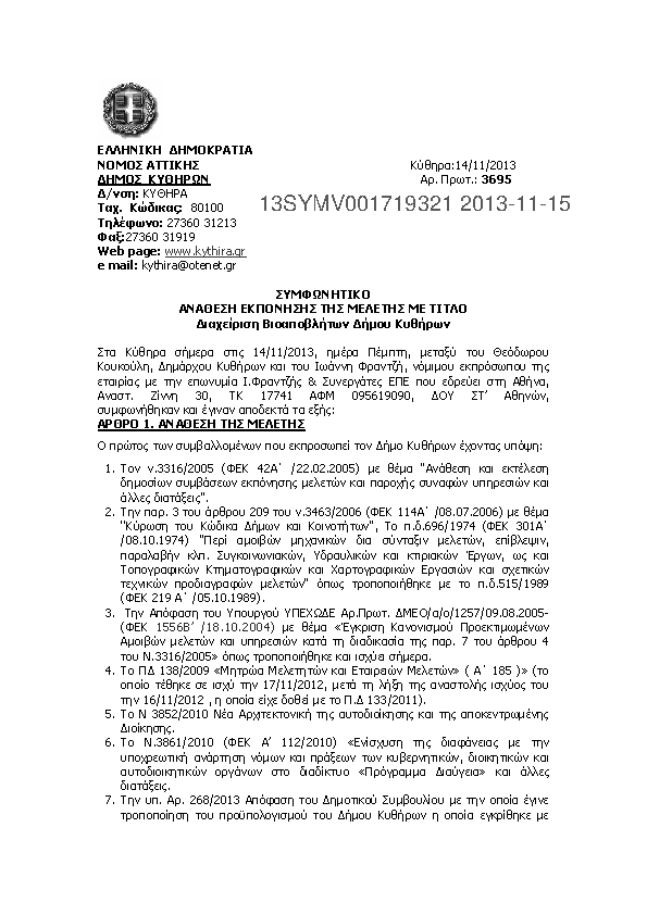 10. Ανάθεση εκπόνησης μελέτης Διαχείριση Βιοαποβλήτων Δήμου Κυθήρων.