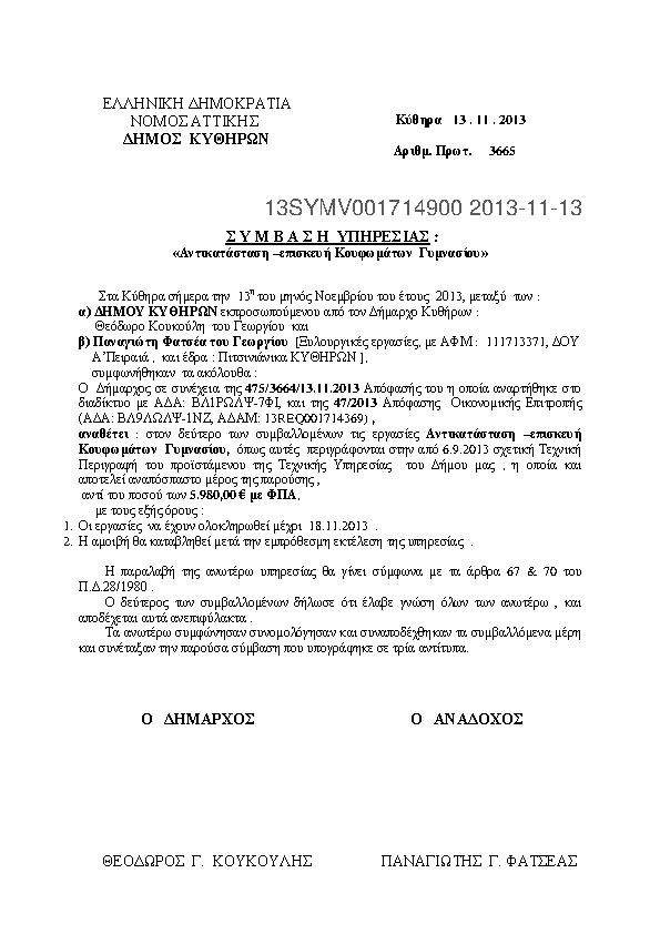 Αναζήτηση σε προκηρύξεις και συμβάσεις για: