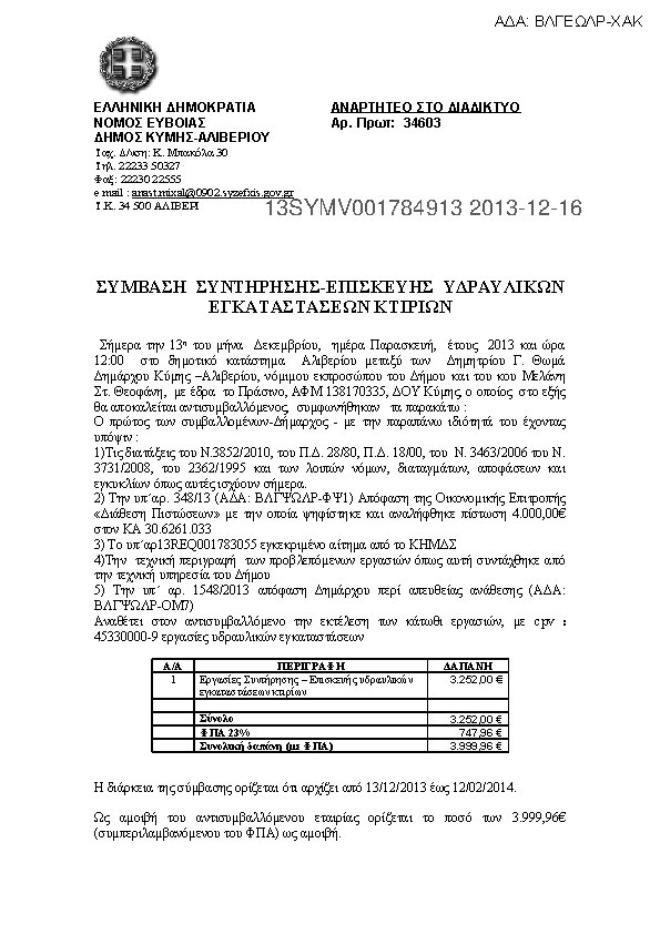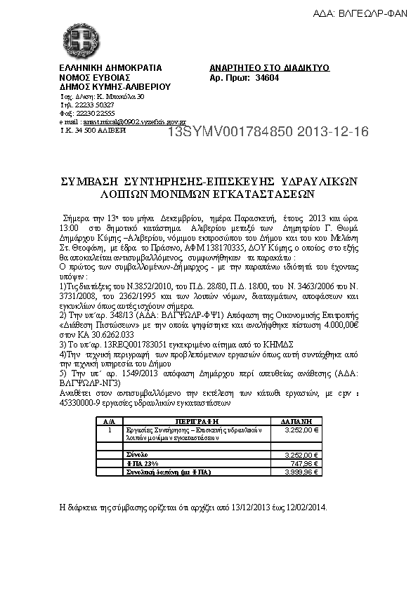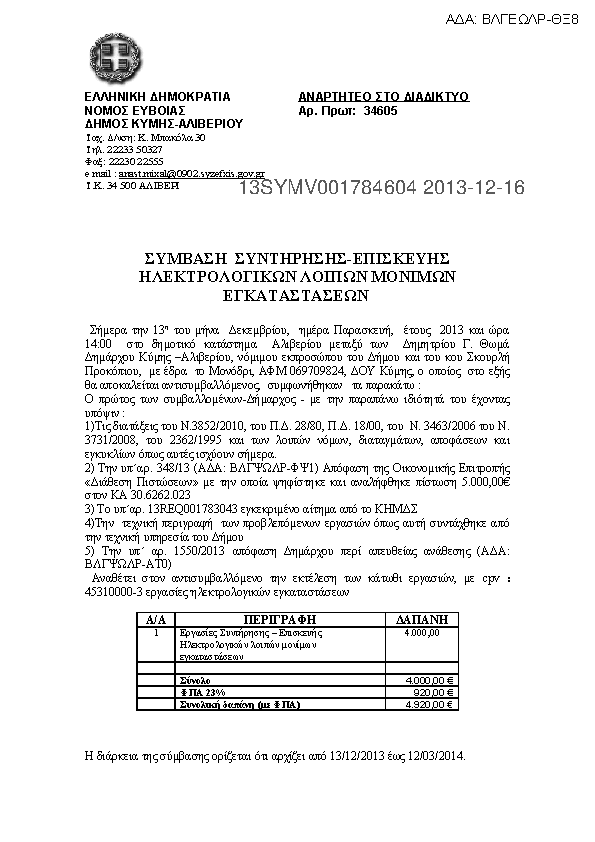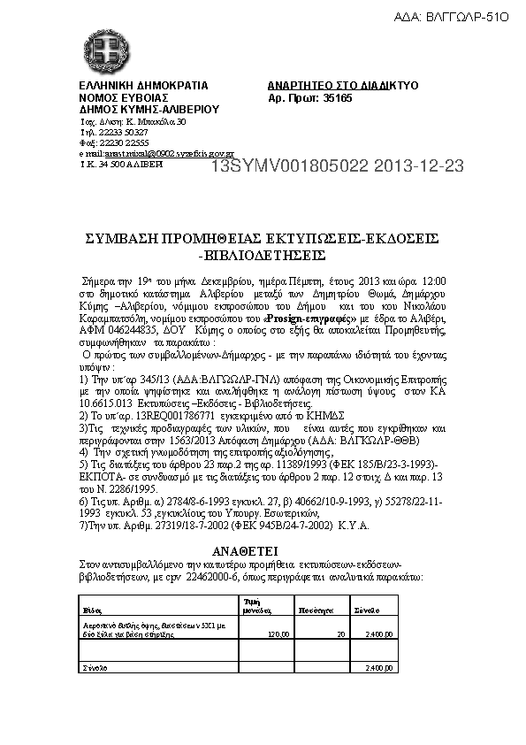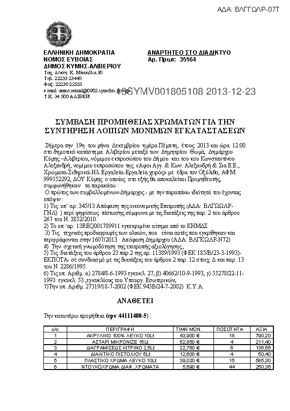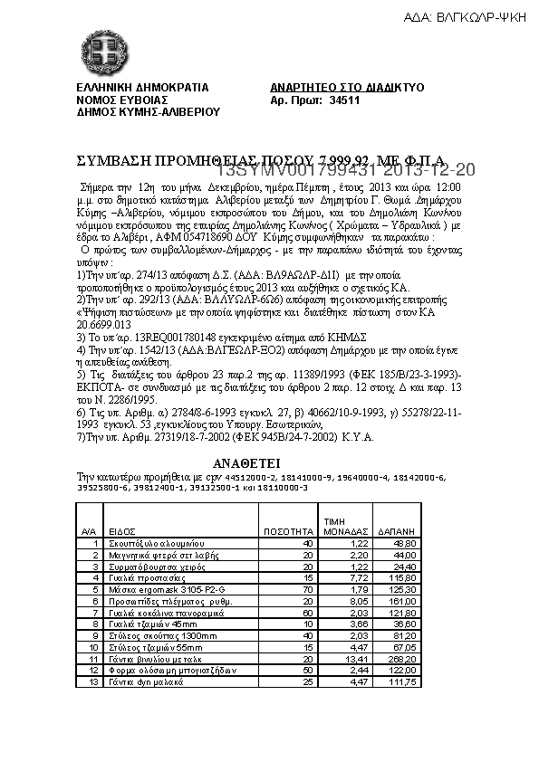 5. ΣΥΜΒΑΣΗ ΠΡΟΜΗΘΕΙΑΣ ΠΟΣΟΥ 7.999,92 ΜΕ Φ.Π.Α