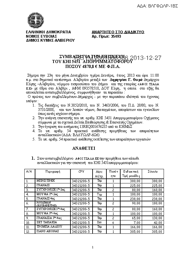 2. ΣΥΜΒΑΣΗ ΓΙΑ ΤΗΝ ΕΠΙΣΚΕΥΗ ΤΟΥ ΚΗΙ 5451 ΑΠΟΡΡΙΜΜΑΤΟΦΟΡΟΥ ΠΟΣΟΥ 4870,8 € ΜΕ Φ.Π.Α.