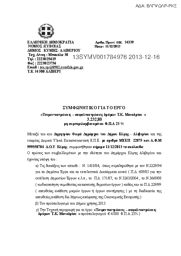 8. Τσιμεντοστρώσεις – ασφαλτοστρώσεις δρόμων Τ.Κ. Μονοδρίου » 3.232,80 μη συμπεριλαμβανομένου Φ.Π.Α 23