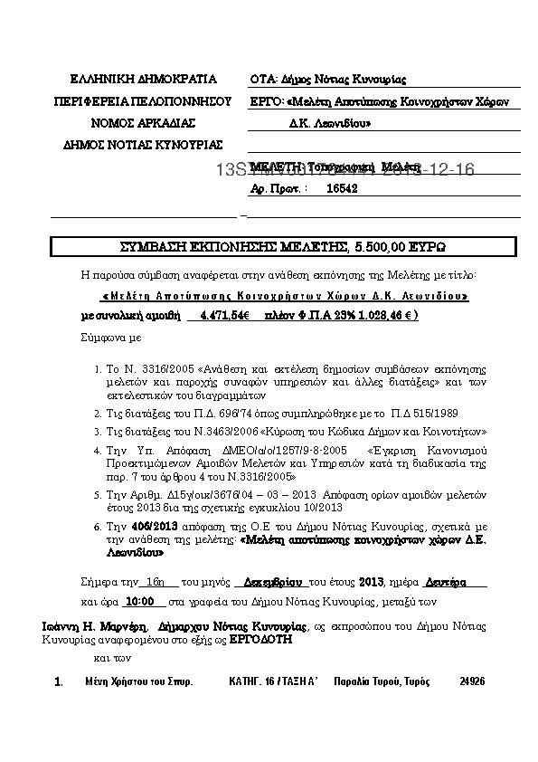 9. Μελέτη αποτύπωσης κοινόχρηστων χώρων Δ.Ε. Λεωνιδίου