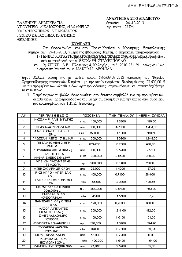 10. ΠΡΟΜΗΘΕΙΑ ΕΙΔΩΝ ΑΡΤΟΤΡΟΦΟΔΟΣΙΑΣ ΓΙΑ ΤΟΥΣ ΚΡΑΤΟΥΜΕΝΟΥΣ ΤΟΥ ΓΕΝΙΚΟΥ ΚΑΤΑΣΤΗΜΑΤΟΣ ΚΡΑΤΗΣΗΣ ΘΕΣ/ΝΙΚΗΣ
