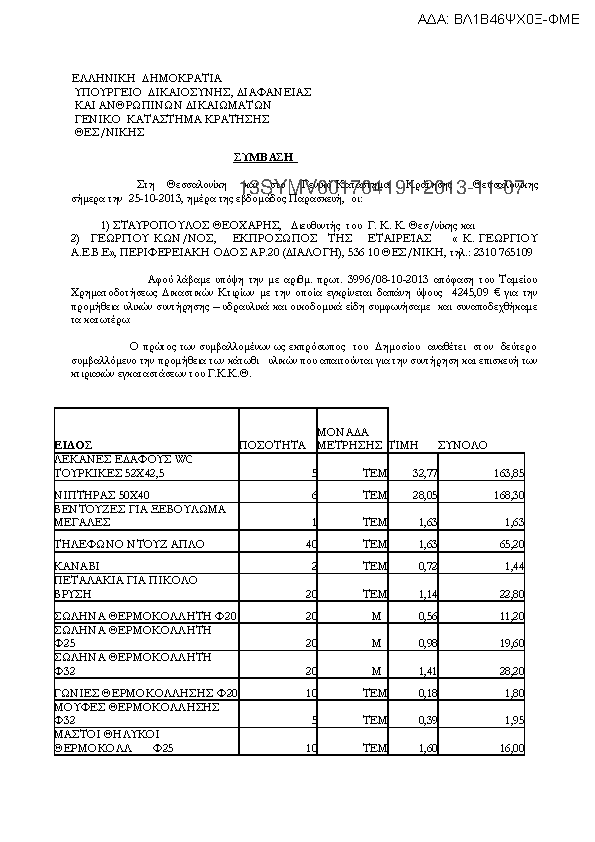 9. ΣΥΜΒΑΣΗ ΓΙΑ ΤΗΝ ΠΡΟΜΗΘΕΙΑ ΥΔΡΑΥΛΙΚΩΝ ΚΑΙ ΟΙΚΟΔΟΜΙΚΩΝ ΥΛΙΚΩΝ ΣΤΟ Γ.Κ.Κ.Θ.