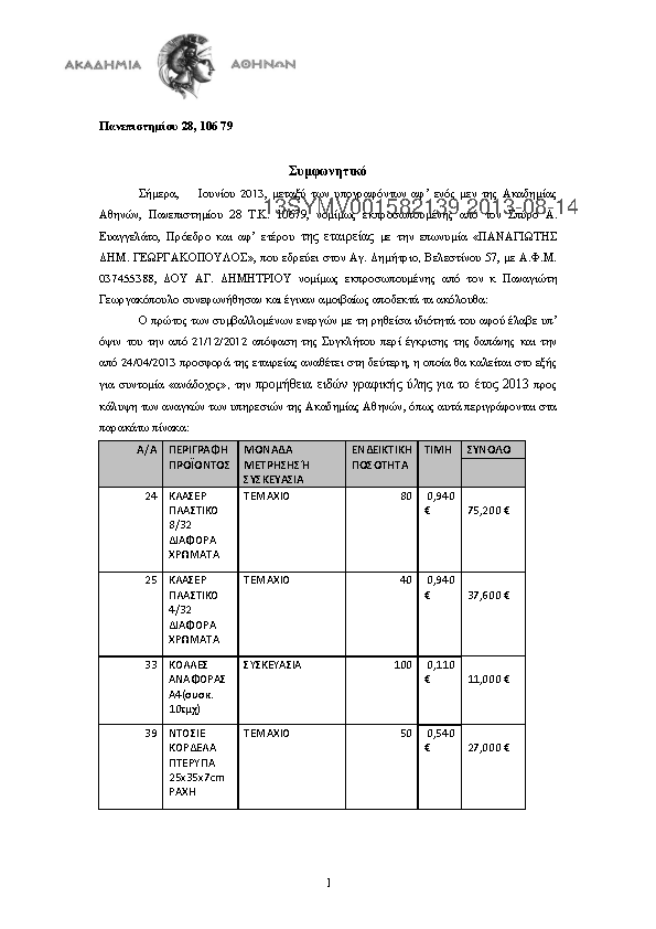 3. ΔΙΑΚΗΡΥΞΗ Νο 1/2013 ΑΝΟΙΚΤΟΥ ΔΗΜΟΣΙΟΥ ΔΙΑΓΩΝΙΣΜΟΥ ΠΑΡΟΧΗΣ ΥΠΗΡΕΣΙΩΝ Με τίτλο “ΑΝΑΔΕΙΞΗ ΑΝΑΔΟΧΟΥ ΓΙΑ ΤΗΝ ΠΑΡΟΧΗ ΥΠΗΡΕΣΙΩΝ ΚΑΘΑΡΙΟΤΗΤΑΣ ΤΩΝ ΚΤΗΡΙΩΝ ΤΗΣ ΑΚΑΔΗΜΙΑΣ ΑΘΗΝΩΝ”