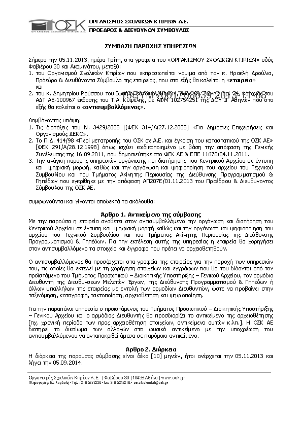 4. Δημιουργία ηλεκτρονικού αρχείου συμβάσεων και τήρηση του μητρώου δεσμεύσεων από 19.10.2