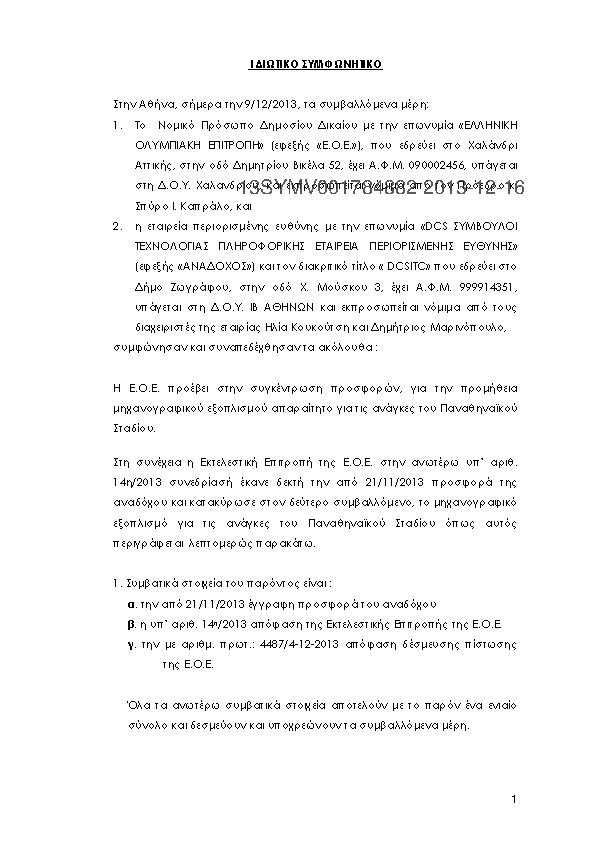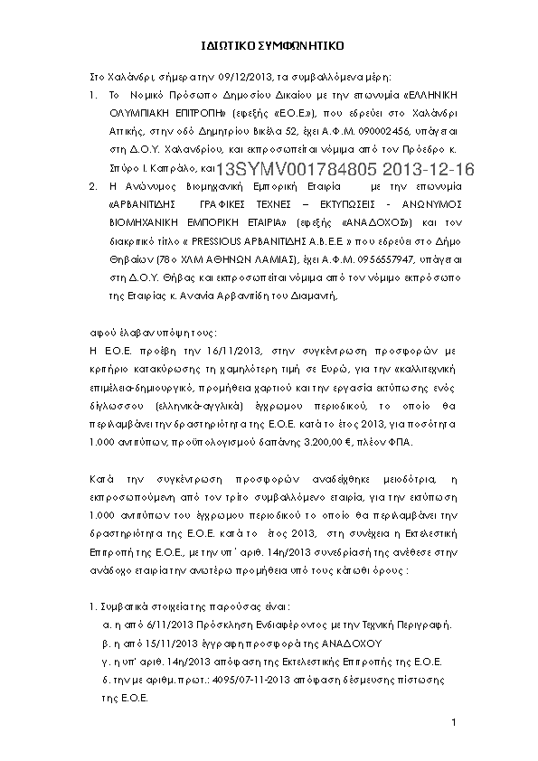 1. πρόχειρος διαγωνισμός, για την κάλυψη – ασφάλιση των περιουσιακών στοιχείων της Ε.Ο.Ε.