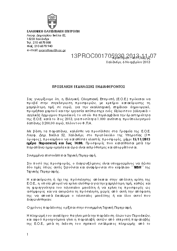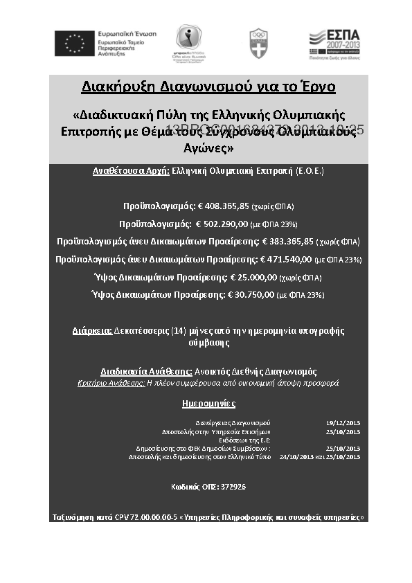 7. Διακήρυξη σύμβασης για το Έργο "ΔΙΑΔΙΚΤΥΑΚΗ ΠΥΛΗ ΤΗΣ ΕOE ΜΕ ΘΕΜΑ ΤΟΥΣ ΣΥΓΧΡΟΝΟΥΣ ΟΛΥΜΠΙΑΚΟΥΣ ΑΓΩΝΕΣ"