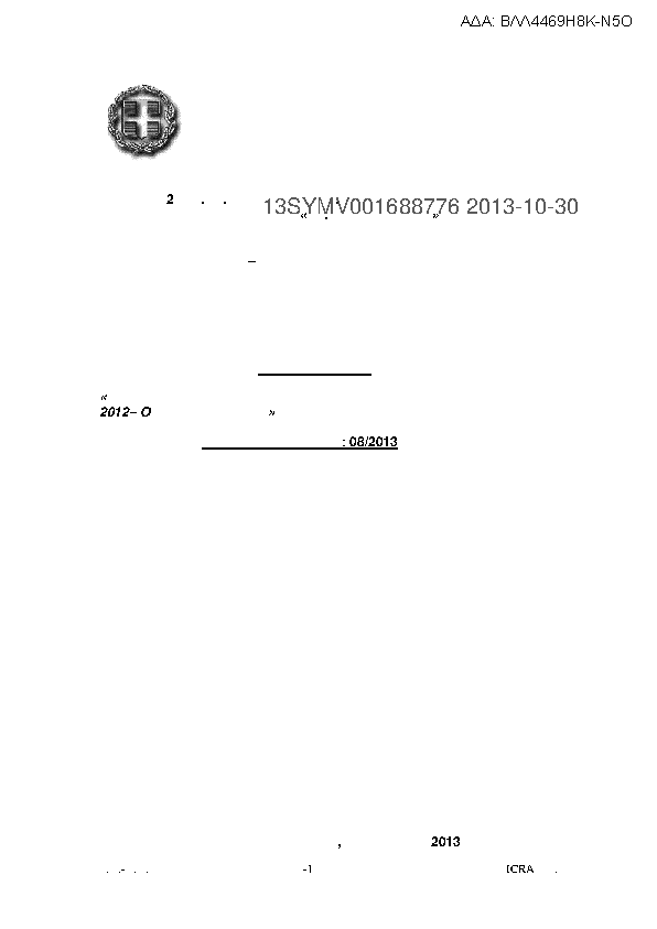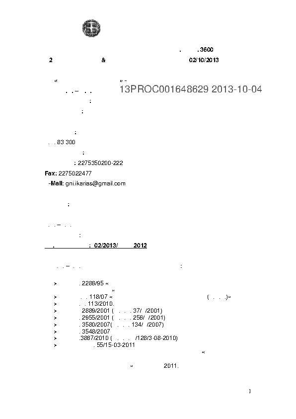 1. 08/2013Ανακοίνωση διενέργειας Πρόχειρου Μειοδοτικού Διαγ. για την προμήθεια μελανιών