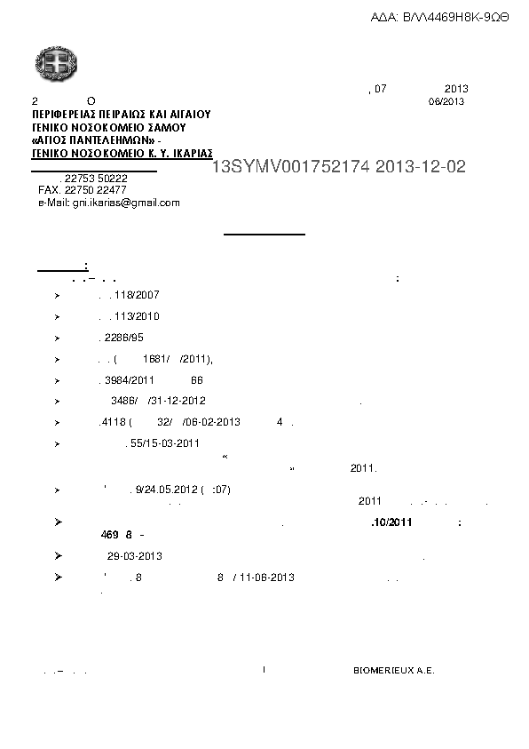 4. 06/2013BIOMERIEUX A.E.«Θρεπτικών υλικών ειδικών (Μικροβιολογικού) και Αντιδραστηρίων Μικροβιολογικών