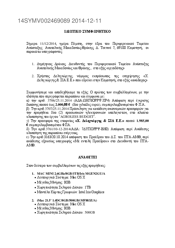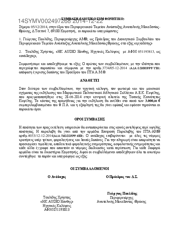 Αναζήτηση σε προκηρύξεις και συμβάσεις για: