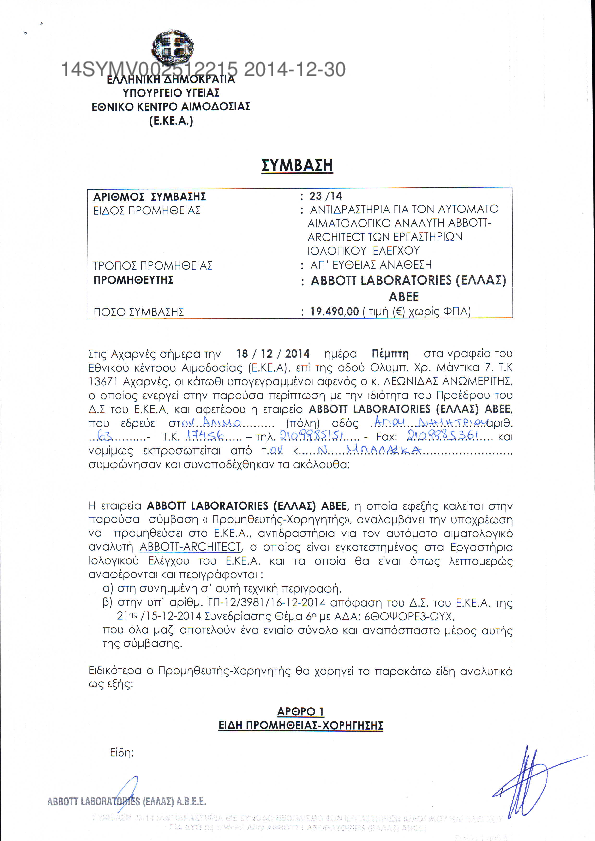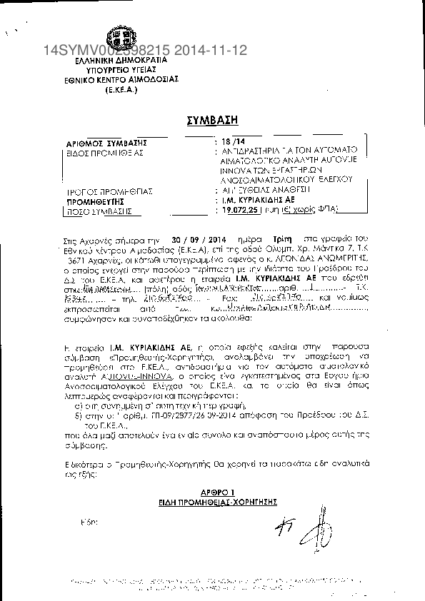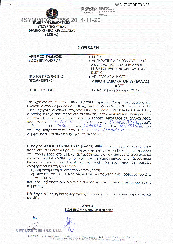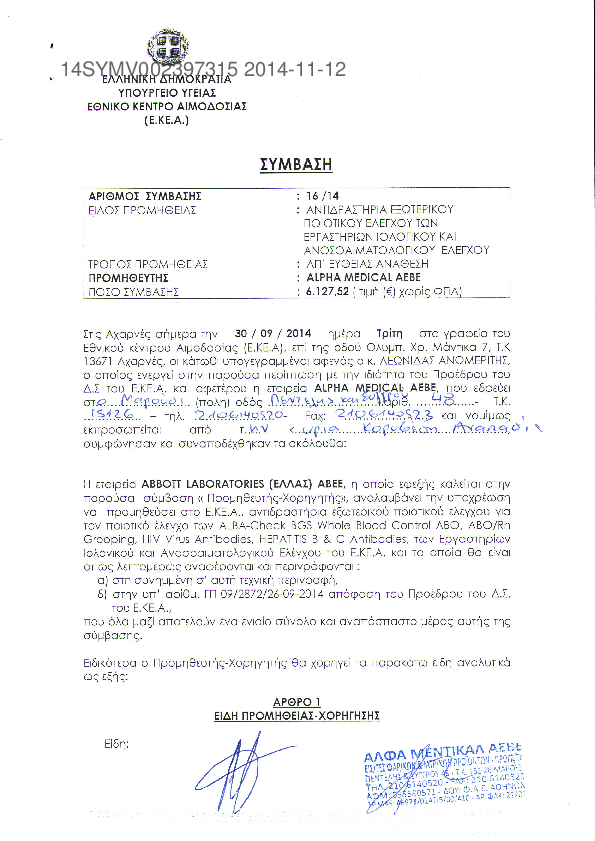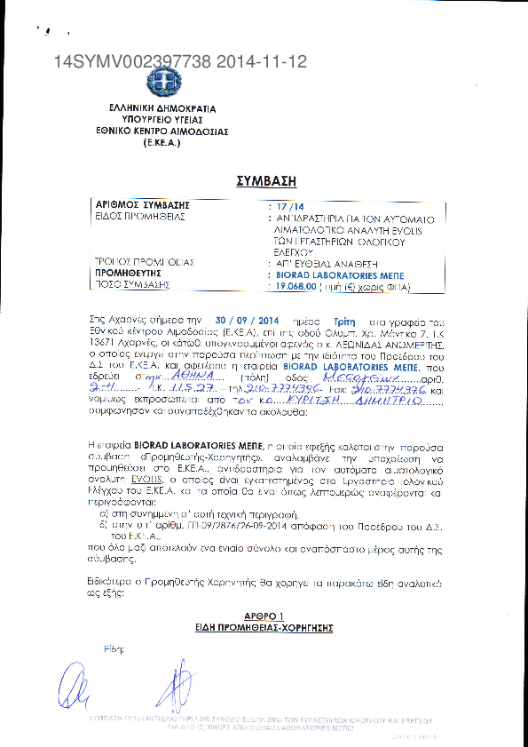 1. Προμήθεια αντιδραστηρίων εξωτερικού ποιοτικου ελέγχου των εργ.Ιολογικού και Ανοσοαιματολογικού ελεγχ