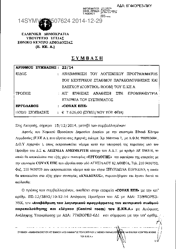 Τα δεδομένα από το Κεντρικό Ηλεκτρονικό Μητρώο Δημοσίων Συμβάσεων (ΚΗΜΔΗΣ) ανακτώνται από τους δημιουργούς του εργαλείου DEiXTo καθώς το ΚΗΜΔΗΣ δεν παρέχει ανοικτά δεδομένα. Για περισσότερες πληροφορίες: