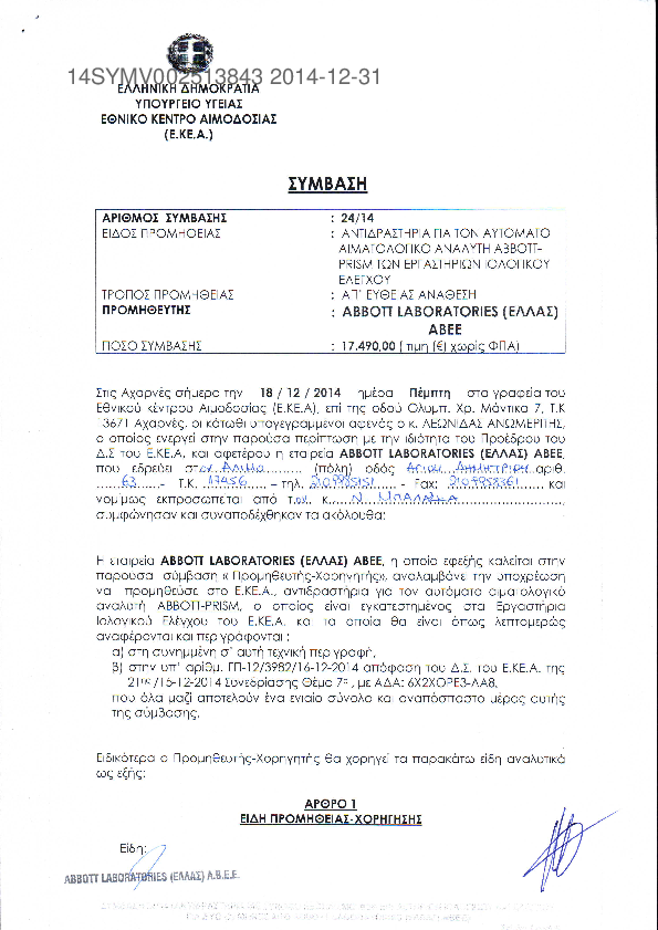 6. ΔΙΑΚΗΡΥΞΗΑΝΟΙΚΤΟΥ ΤΑΚΤΙΚΟΥ ΔΗΜΟΣΙΟΥ ΔΙΑΓΩΝΙΣΜΟΥανάδειξης αναδόχου για τηνΠΑΡΟΧΗ ΥΠΗΡΕΣΙΩΝ ΣΥΝΤΗΡΗΣΗΣ - ΤΕΧΝΙΚΗΣ ΥΠΟΣΤΗΡΙΞΗΣ ΤΩΝ ΗΛΕΚΤΡΟΜΗΧΑΝΟΛΟΓΙΚΩΝ ΕΓΚΑΤΑΣΤΑΣΕΩΝ ΤΟΥ ΕΘΝΙΚΟΥ ΚΕΝΤΡΟΥ ΑΙΜΟΔΟΣΙΑΣ (Ε.ΚΕ.Α.)
