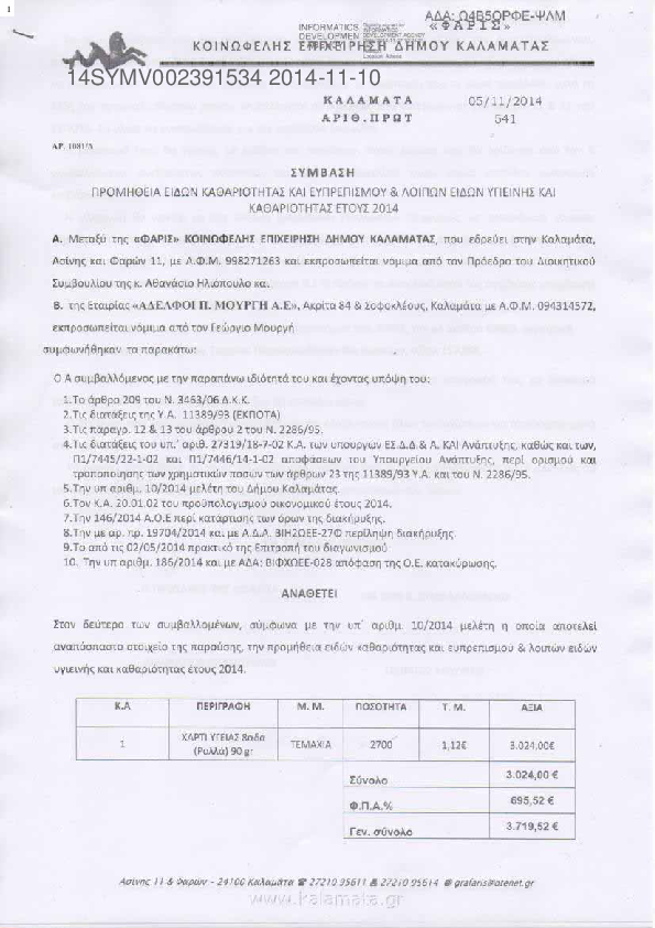 3. ΣΥΜΒΑΣΗ ΠΡΟΜΗΘΕΙΑ ΕΙΔΩΝ ΚΑΘΑΡΙΟΤΗΤΑΣ ΚΑΙ ΕΥΠΡΕΠΙΣΜΟΥ & ΛΟΙΠΩΝ ΕΙΔΩΝ ΥΓΙΕΙΝΗΣ