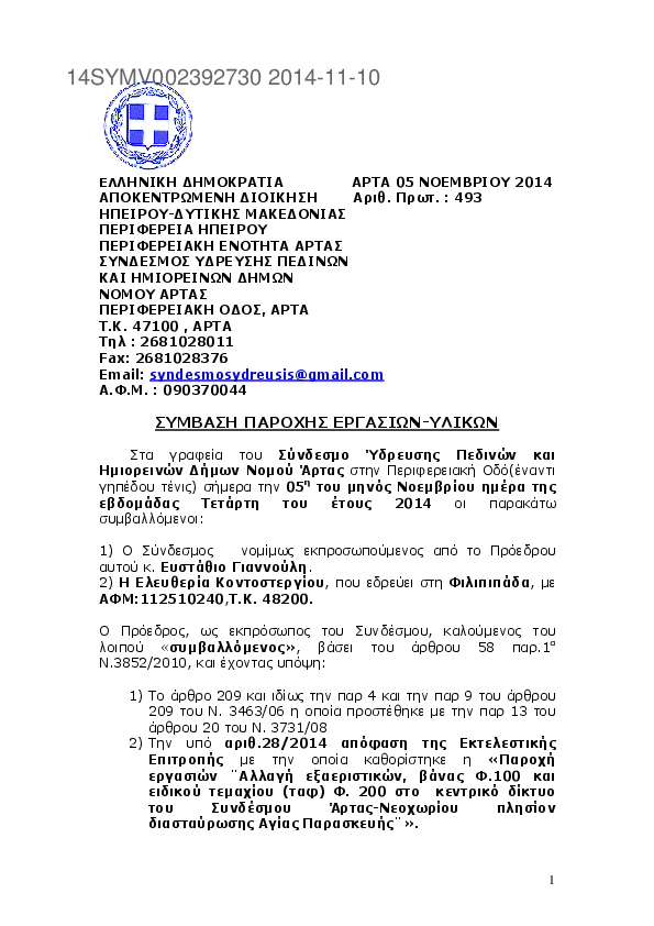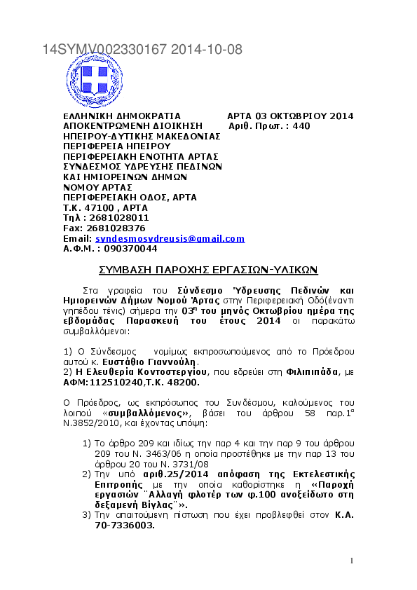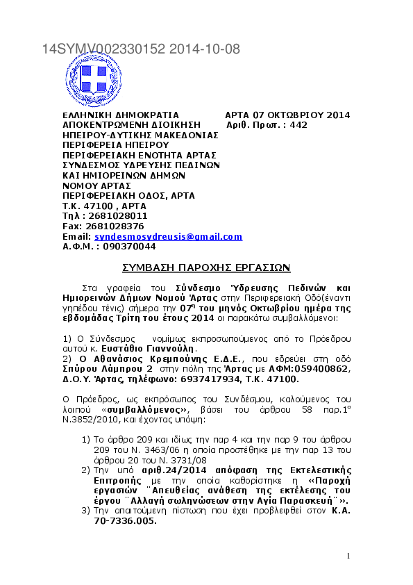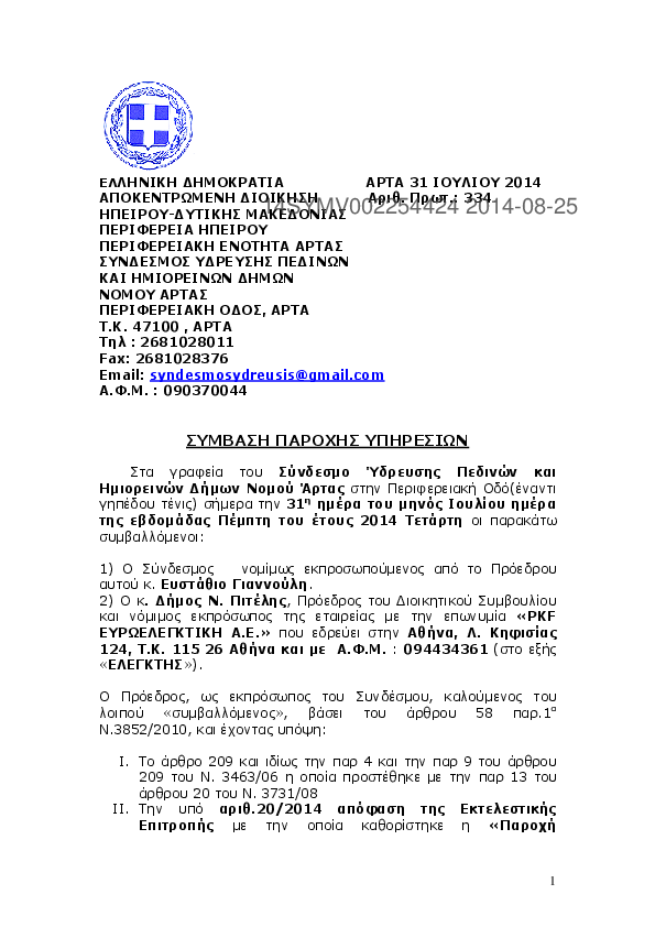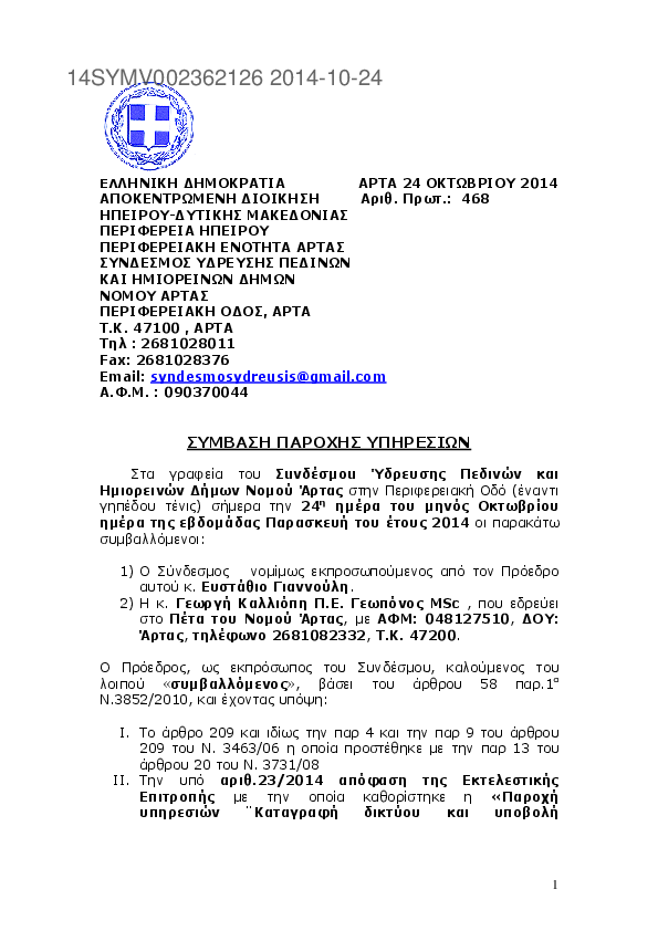 1. ΣΥΜΒΑΣΗ ΠΑΡΟΧΗΣ ΥΠΗΡΕΣΙΩΝ ¨Τακτικός οικονομικός έλεγχος από ορκωτό λογιστή για το έτος 2014¨