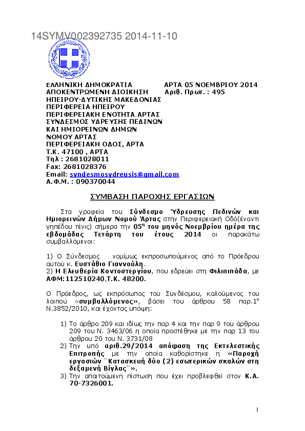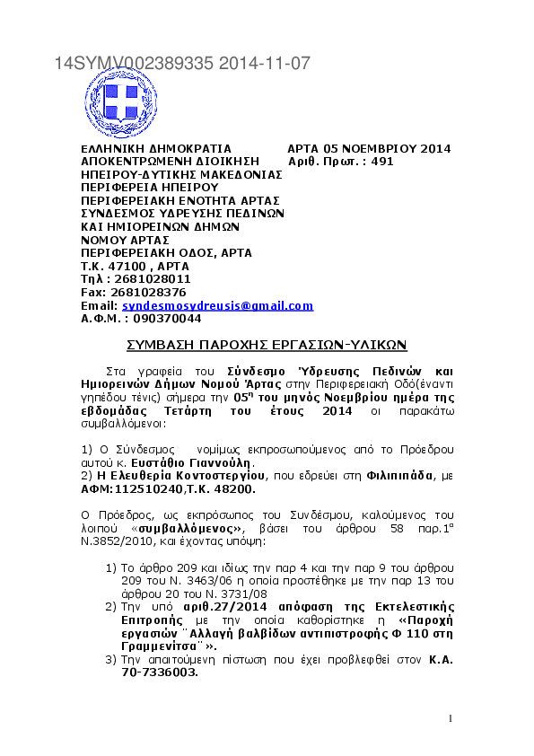 5. ΣΥΜΒΑΣΗ ΠΑΡΟΧΗΣ ΕΡΓΑΣΙΩΝ-ΥΛΙΚΩΝ ¨Αλλαγή βαλβίδων αντιπιστροφής Φ 110 στη Γραμμενίτσα¨