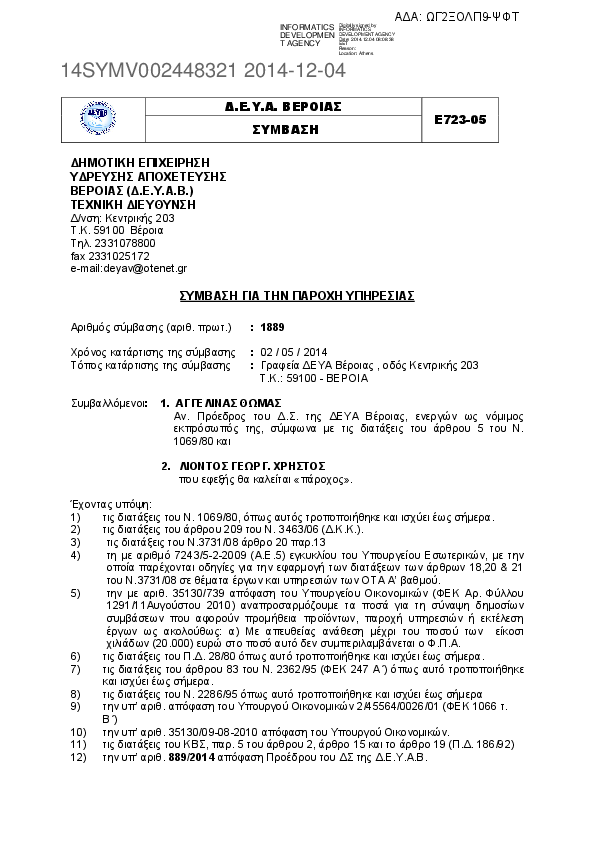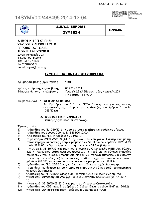 Αναζήτηση σε προκηρύξεις και συμβάσεις για: