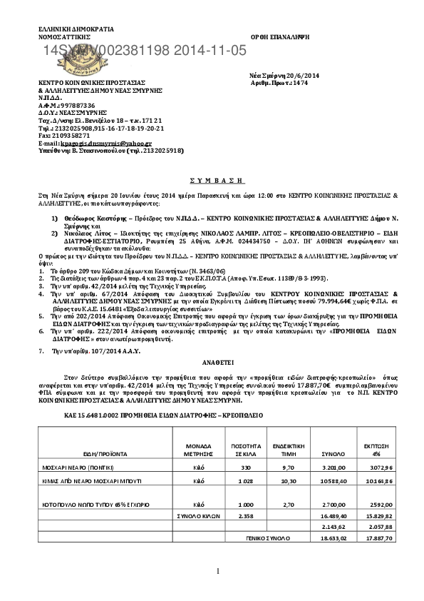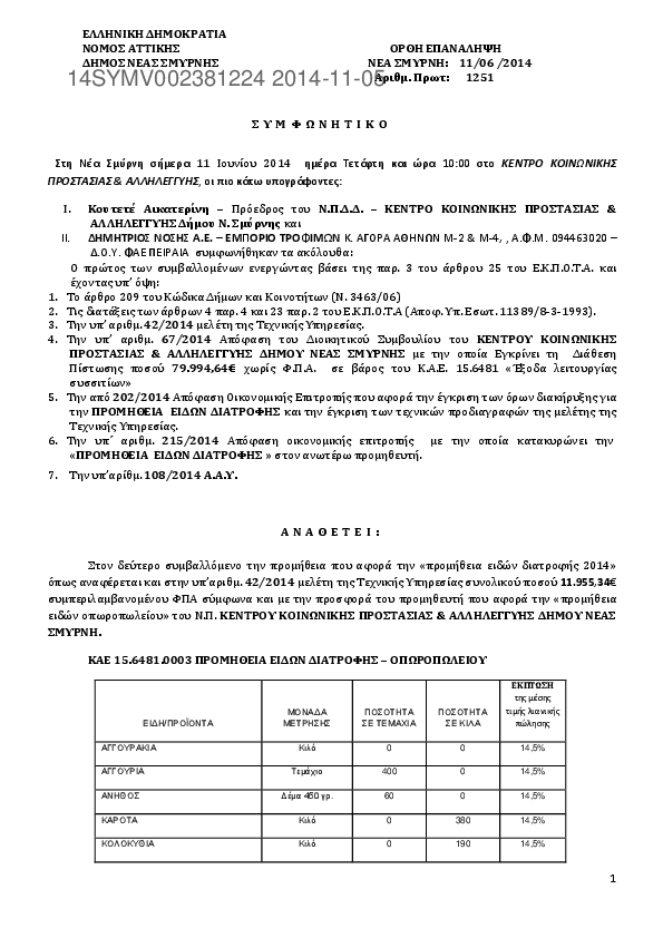 5. ΠΡΟΜΗΘΕΙΑ ΕΙΔΩΝ ΔΙΑΤΡΟΦΗΣ 2014