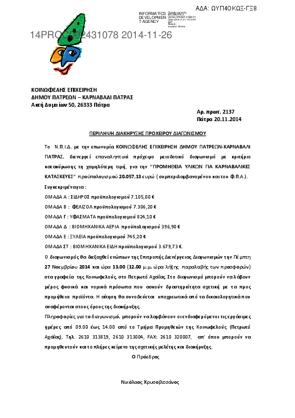 Αναζήτηση σε προκηρύξεις και συμβάσεις για:
