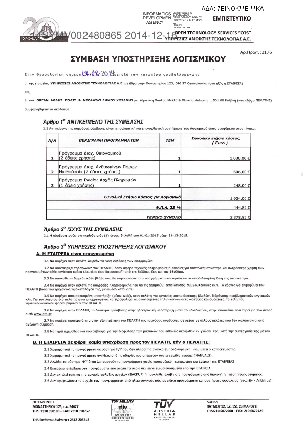 10. Προληπτική και επανορθωτική συντήρηση του Λογισμικού (απο 1/1/2015 έως 31/12/2015)