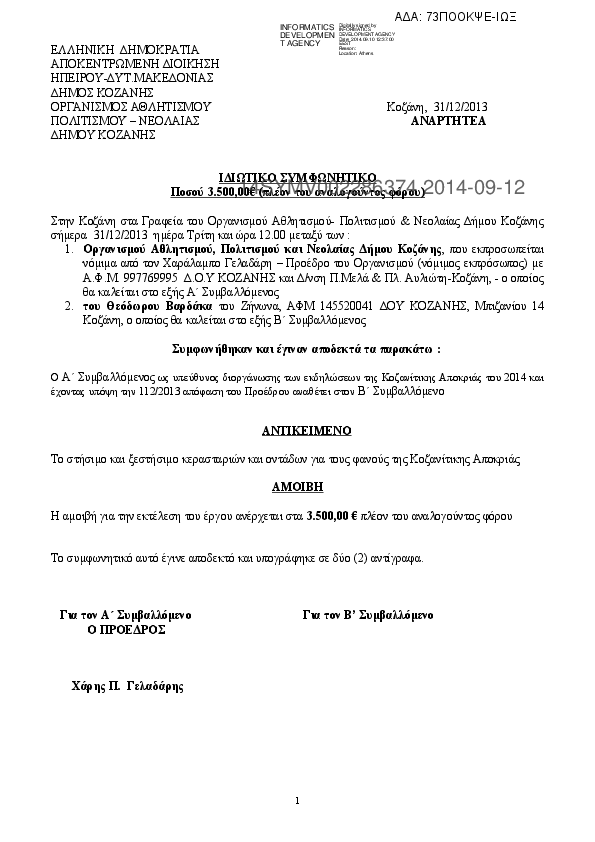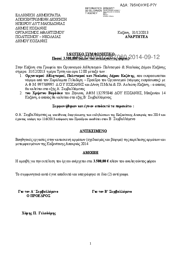 1. Φύλαξη χώρου συγκεντρωσης των αρμάτων της Αποκριάς 2014