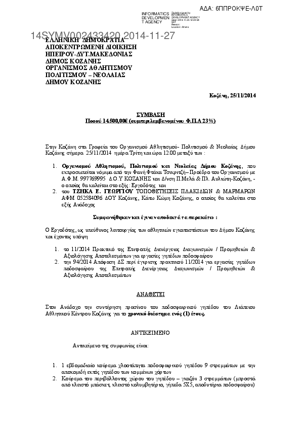 Αναζήτηση σε προκηρύξεις και συμβάσεις για: