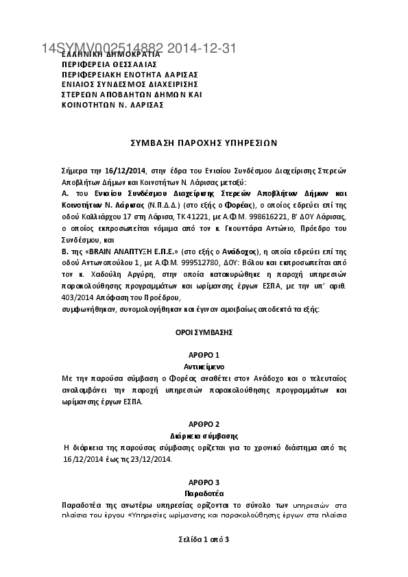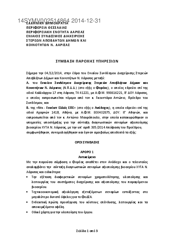 6. υπηρεσίες υποστήριξης για την σύνταξη διαγνωστικών σεναρίων αξιοποίησης βιοαερίου ΧΥΤΑ Ν. Λάρισας