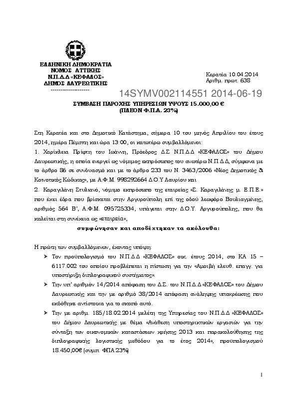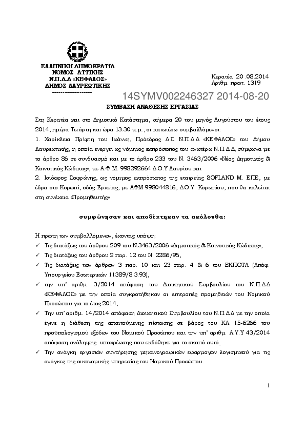 8. ΣΥΜΒΑΣΗ ΑΝΑΘΕΣΗΣ ΣΥΝΤΗΡΗΣΗΣ ΕΦΑΡΜΟΓΩΝ ΛΟΓΙΣΜΙΚΟΥ ΓΙΑ ΤΗΝ ΛΕΙΤΟΤΥΡΓΙΑ ΤΗΣ ΟΙΚ. ΥΠ. ΤΟΥ ΝΠΔΔ ΚΕΦΑΛΟΣ