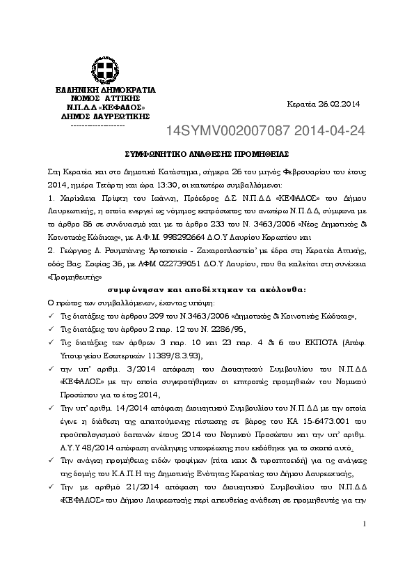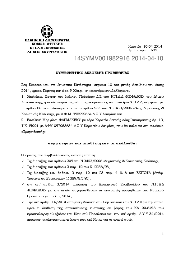 1. ΣΥΜΒΑΣΗ ΑΝΑΘΕΣΗΣ ΠΡΟΜΗΘΕΙΑΣ ΑΝΤΙΦΘΕΙΡΙΚΩΝ ΠΡΟΙΟΝΤΩΝ ΓΙΑ ΠΑΙΔΙΚΟΥΣ ΣΤΑΘΜΟΥΣ ΤΟΥ ΝΠΔΔ ΚΕΦΑΛΟΣ
