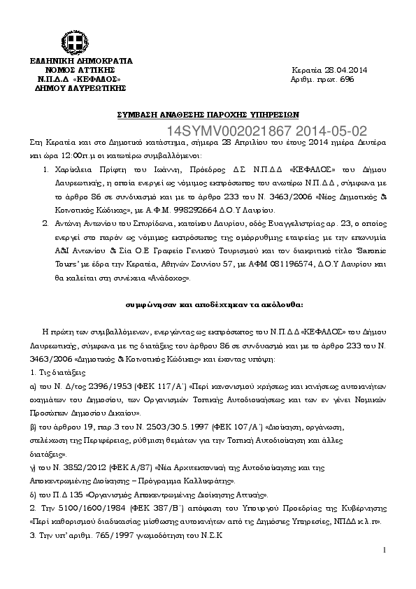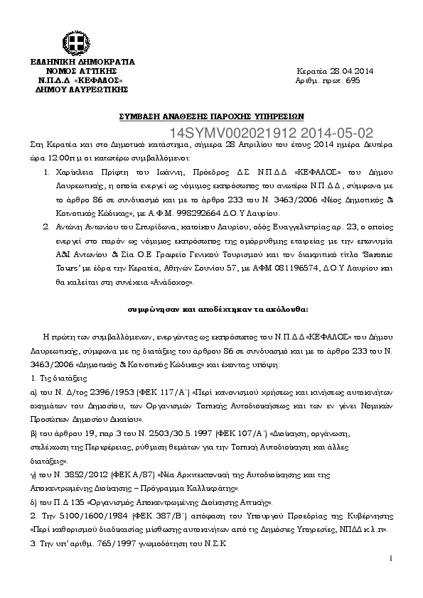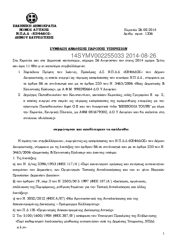 5. ΣΥΜΒΑΣΗ ΜΙΣΘΩΣΗΣ ΠΟΥΛΜΑΝ ΓΙΑ ΜΟΝΟΗΜΕΡΗ ΕΚΔΡΟΜΗ ΤΟΥ ΚΑΠΗ Δ.Ε. ΛΑΥΡΙΟΥ ΤΟΥ ΝΠΔΔ ΚΕΦΑΛΟΣ