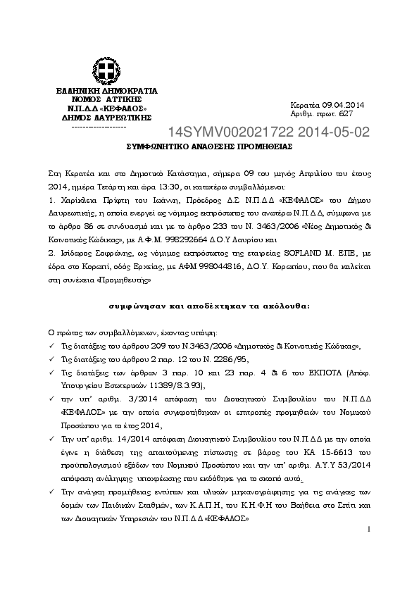9. ΣΥΜΒΑΣΗ ΑΝΑΘΕΣΗΣ ΠΡΟΜΗΘΕΙΑΣ ΛΟΓΙΣΜΙΚΟΥ & ΑΝΤ/ΚΩΝ Η/Υ ΓΙΑ ΤΗΝ ΟΙΚΟΝΟΜΙΚΗ ΛΕΙΤΟΥΡΓΙΑ ΤΟΥ ΝΠΔΔ ΚΕΦΑΛΟΣ