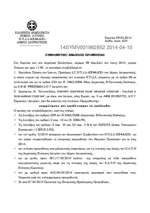 2. ΣΥΜΦΩΝΗΤΙΚΟ ΠΡΟΜΗΘΕΙΑΣ ΕΠΠΑΓΕΛΜΑΤΙΚΗΣ ΚΑΦΕΤΙΕΡΑΣ ΓΙΑ ΑΝΑΓΚΕΣ ΤΟΥ ΚΑΠΗ Δ.Ε. ΛΑΥΡΙΟΥ ΤΟΥ ΝΠΔΔ ΚΕΦΑΛΟΣ