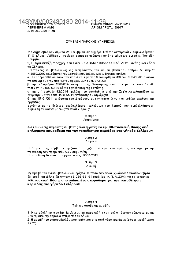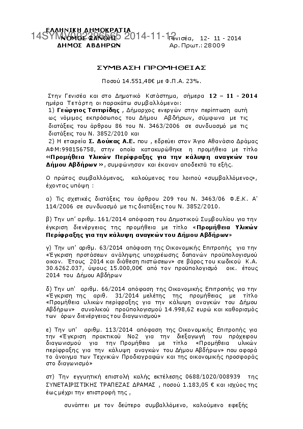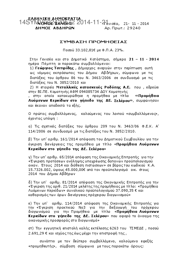 5. ΣΥΜΒΑΣΗ ΓΙΑ ΤΗΝ «Προμήθεια Υλικών Περίφραξης για την κάλυψη αναγκών του Δήμου Αβδήρων »