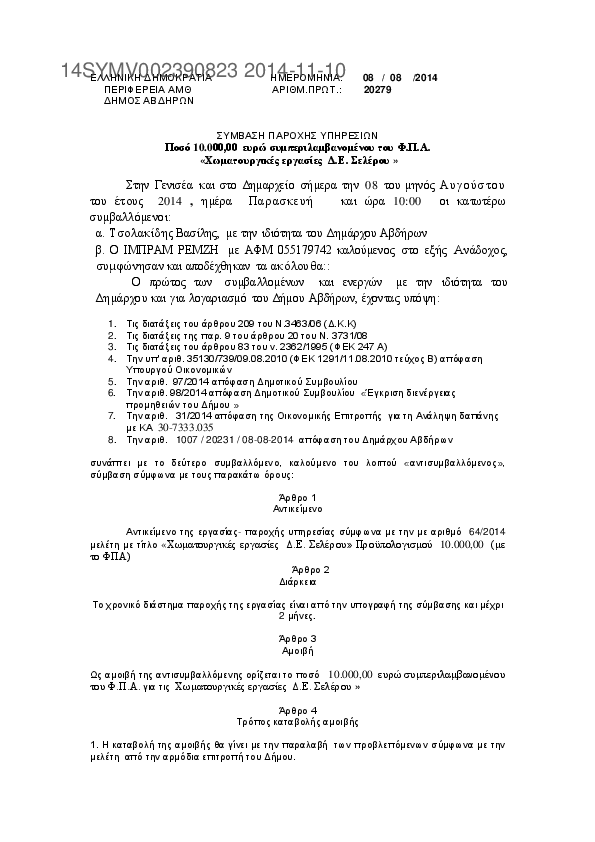 2. ΣΥΜΒΑΣΗ ΠΑΡΟΧΗΣ ΥΠΗΡΕΣΙΩΝ Εργασίες καθαιρέσεων νηπιαγωγείου Γενισέας