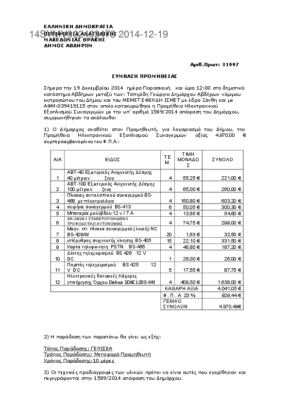 10. ΣΥΜΒΑΣΗ ΠΡΟΜΗΘΕΙΑΣ ΗΛΕΚΤΡΟΝΙΚΟΥ ΕΞΟΠΛΙΣΜΟΥ ΣΥΝΑΓΕΡΜΩΝ