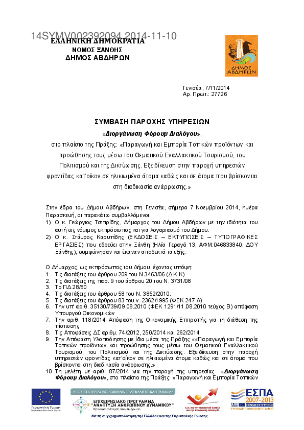 4. ΣΥΜΒΑΣΗ ΠΑΡΟΧΗΣ ΥΠΗΡΕΣΙΩΝ «Διοργάνωση Φόρουμ Διαλόγου»,
