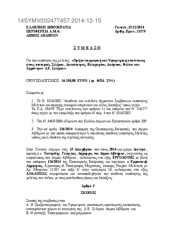 9. Σ Υ Μ Β Α Σ Η«Οριζοντιογραφική και Υψομετρική αποτύπωση στους οικισμούς Σελέρου, Λευκόπετρας, Βελοχω