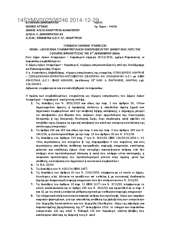 9. ΦΙΛΟΞΕΝΙΑ ΠΛΗΜΜΥΡΟΠΑΘΩΝ ΟΙΚΟΓΕΝΕΙΩΝ ΤΟΥ ΔΗΜΟΥ ΜΑΣ ΛΟΓΩ ΤΗΣ ΣΦΟΔΡΗΣ ΒΡΟΧΟΠΤΩΣΗΣ ΤΗΣ 6ης ΔΕΚΕΜΒΡΙΟΥ 20
