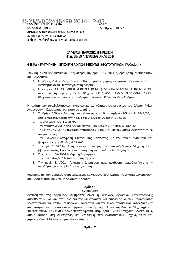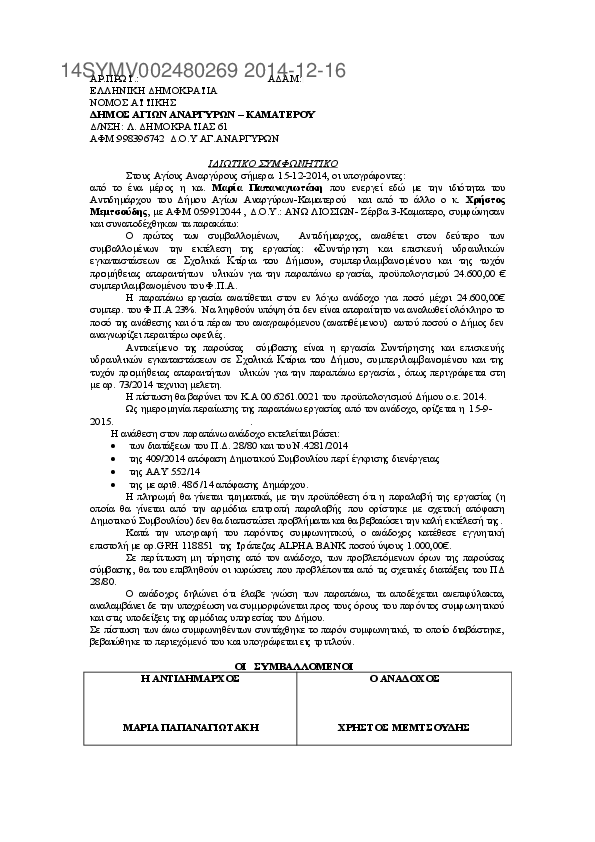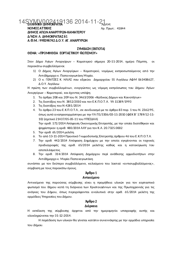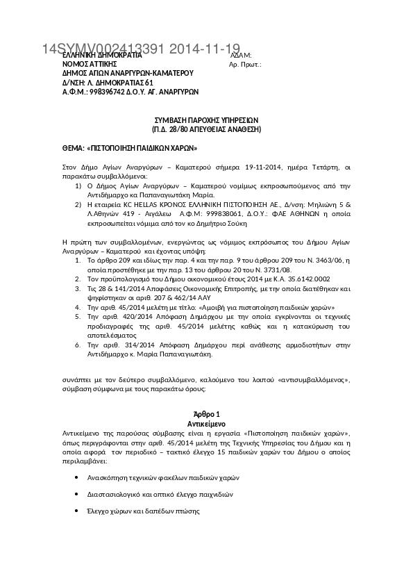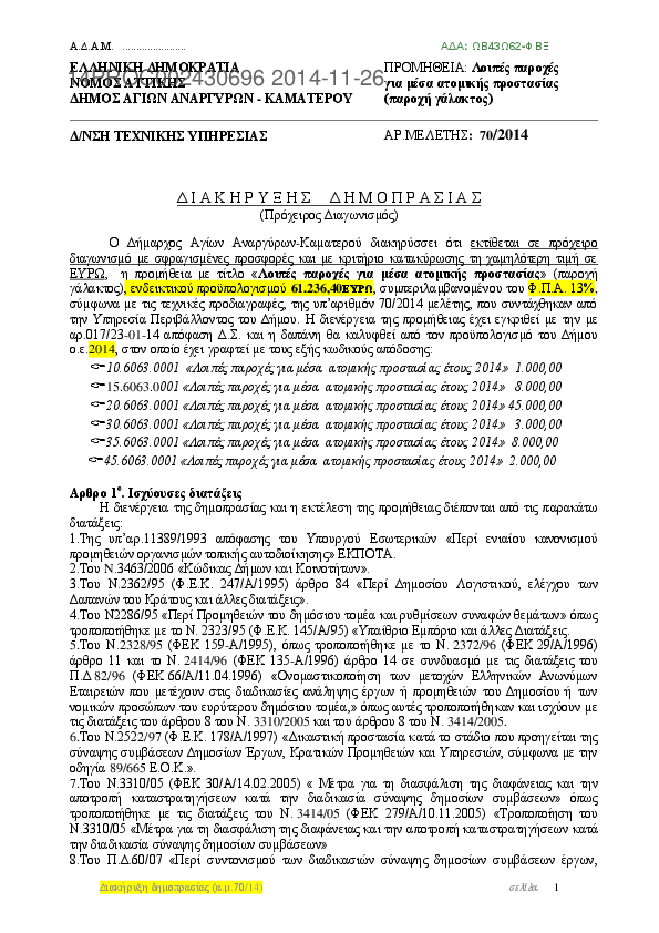 Αναζήτηση σε προκηρύξεις και συμβάσεις για: