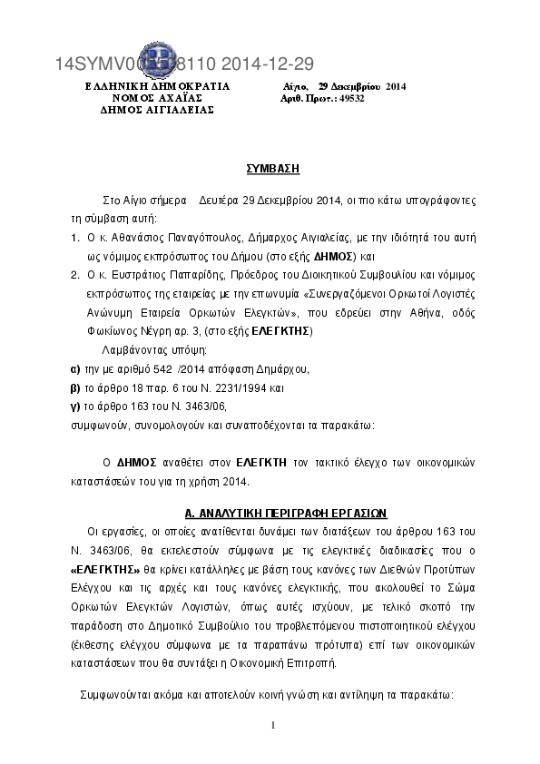 5. Eλέγχος χρήσης του Δήμου οικονομικού έτους 2014