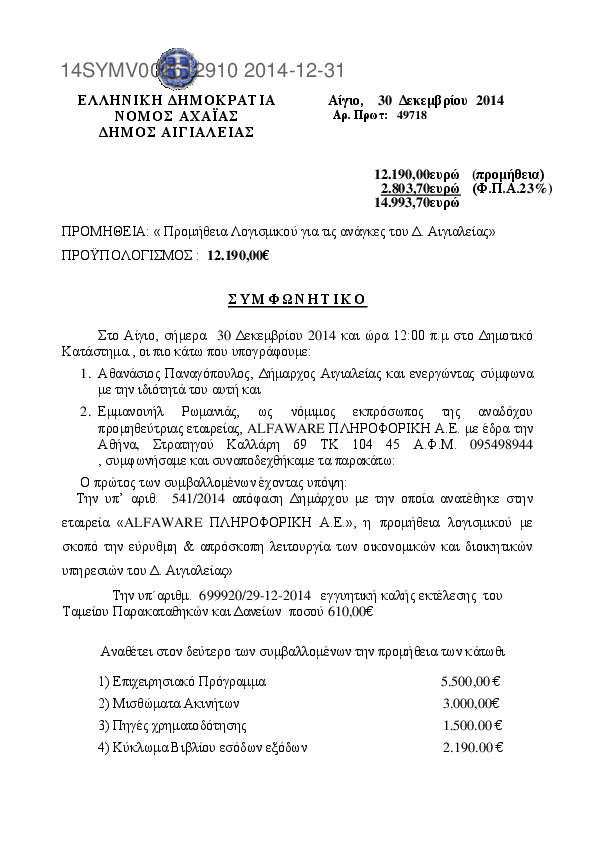 8. ΠΡΟΜΗΘΕΙΑ ΛΟΓΙΣΜΙΚΟΥ ΓΙΑ ΤΙΣ ΑΝΑΓΚΕΣ ΤΟΥ ΔΗΜΟΥ ΑΙΓΙΑΛΕΙΑΣ