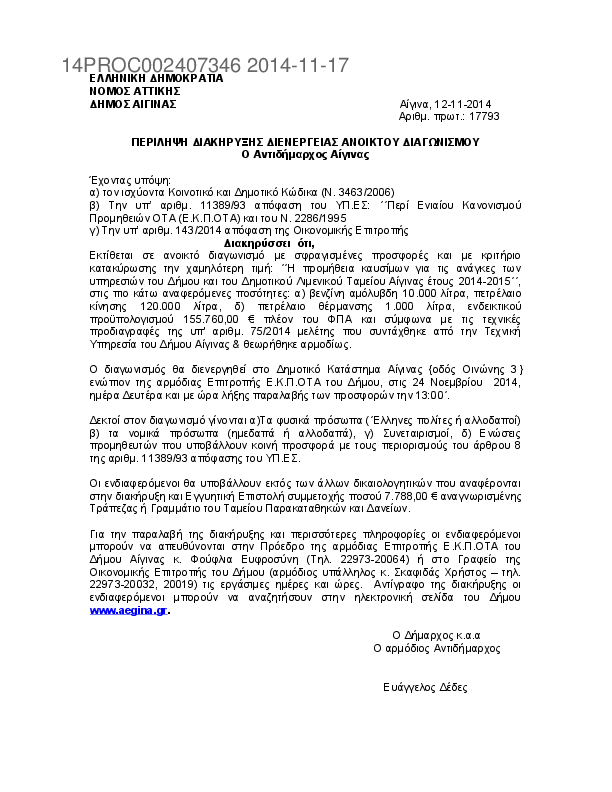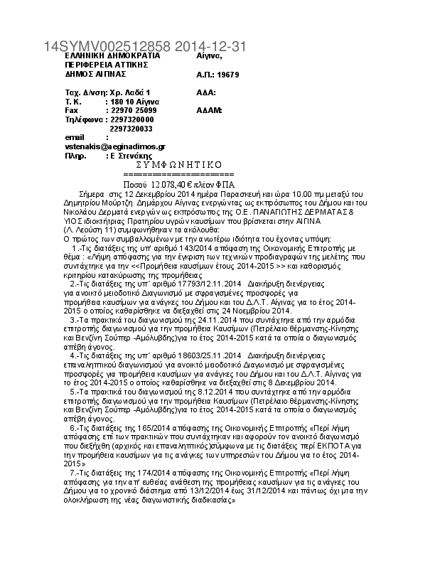 10. ΠΡΟΜΗΘΕΙΑ ΚΑΥΣΙΜΩΝ ΓΙΑ ΤΟ ΔΙΑΣΤΗΜΑ 13-12-2014 ΕΩΣ 31-12-2014