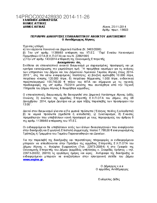 1. ΠΡΟΜΗΘΕΙΑ ΚΑΥΣΙΜΩΝ ΓΙΑ ΤΟ ΕΤΟΣ 2014-2015