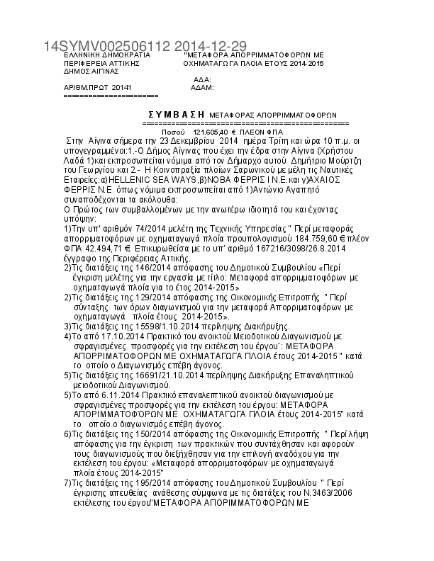 8. ΜΕΤΑΦΟΡΑ ΑΠΟΡΡΙΜΜΑΤΟΦΟΡΩΝ ΜΕ ΟΧΗΜΑΤΑΓΩΓΑ ΠΛΟΙΑ ΕΤΟΥΣ 2014-15