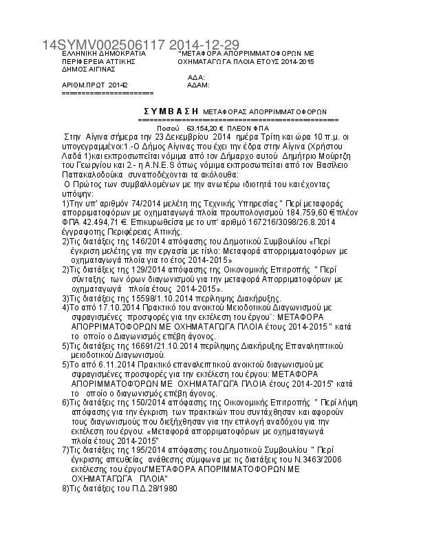 Αναζήτηση σε προκηρύξεις και συμβάσεις για: