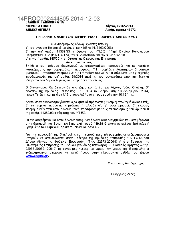 3. ΠΡΟΜΗΘΕΙΑ ΛΑΜΠΤΗΡΩΝ ΔΗΜΟΤΙΚΟΥ ΦΩΤΙΣΜΟΥ (ΟΚΤ.2014)