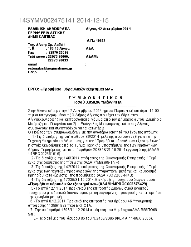 6. ΠΡΟΜΗΘΕΙΑ ΥΔΡΑΥΛΙΚΩΝ ΕΞΑΡΤΗΜΑΤΩΝ (ΟΚΤ.2014)